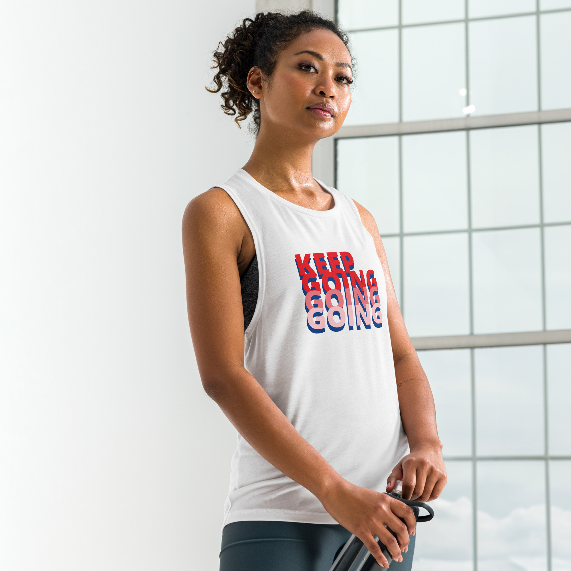 This comfortable muscle tank is soft and flowy with low cut armholes for a relaxed look.